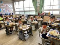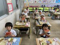 学校では、給食のメニューが『七夕の行事食』でした。「そうめん汁がおいしいからおかわりがしたい。」「たちうおごはんをのりで巻いて食べるとなかなかいける。」「どれもおいしい。」など、とても好評でした。